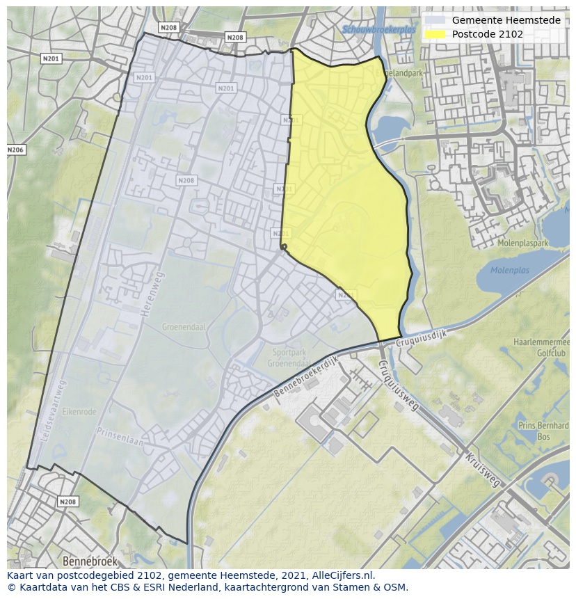 Huishoudens in Heemstede postcode 2102